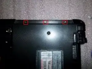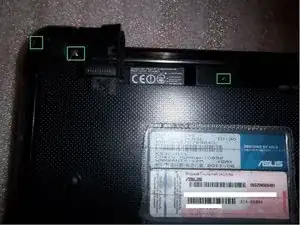 Чтобы достать жесткий диск, выньте четыре винта Ph00, указанных на фото, и потяните пластиковую вкладку влево.