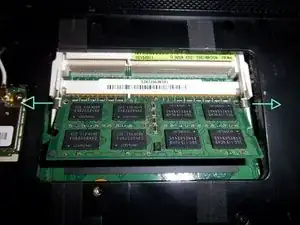 Извлеките модуль(и) ОЗУ, отведя оба металлических защелки наружу.