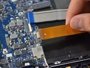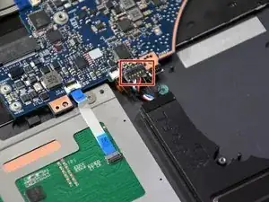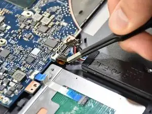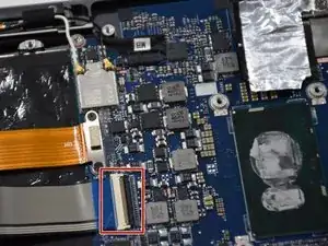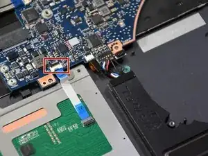 Снимите разъём тачпада, потянув пинцетом.