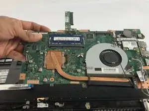 Осторожно поднимите материнскую плату и извлеките её из корпуса ноутбука.
