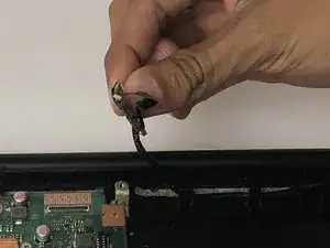 Приоткройте ноутбук примерно на 1/2" (1,3 см), чтобы ослабить петлю и освободить материнскую плату.