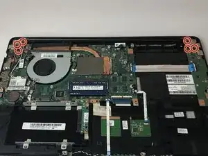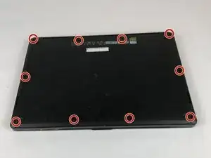 Переверните ноутбук и снимите десять 10 мм винтов с крестообразной головкой Phillips #1, крепящих заднюю панель.