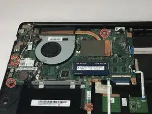 Снимите четыре 5 мм винта с крестообразной головкой Phillips #1 по периметру материнской платы.
