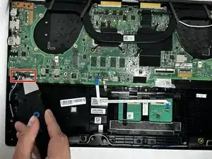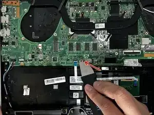 Отсоедините кабель аккумулятора от материнской платы пинцетом.