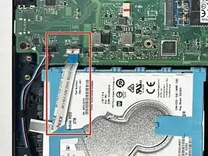 С помощью металлической лопатки поднимите оба зажима ленточных кабелей, разъединяя соединение, как в шаге 8.