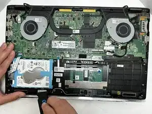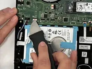 Используя металлическую лопатку, поднимите жёсткий диск и извлеките его из посадочного места.