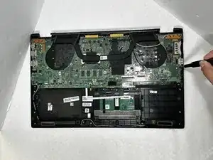 Осторожно поднимите радиатор вверх, используя лопатку iFixit или пальцы, вытяните вентилятор из-под радиатора.