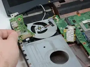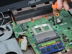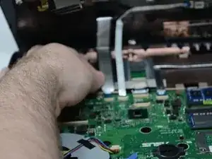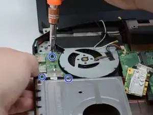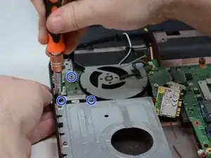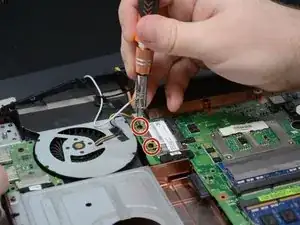 Снимите три винта Phillips #2 с маленькой беспроводной карты, расположенной в верхнем левом углу.