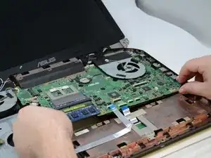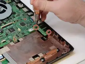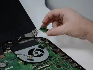 Снимите три винта Phillips #2 с маленькой платы кнопки питания в правом верхнем углу.