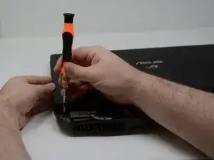 Выньте оба винта Phillips #2 длиной 8 мм из этих отверстий, где были сняты резиновые заглушки.