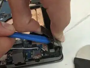 С помощью инструмента для вскрытия приподнимите язычки, фиксирующие экран к основанию.