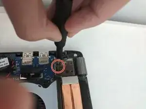 Открутите два винта 6,5 мм JIS №0, расположенные в верхних углах материнской платы.