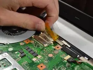 Отклейте ленту от жёлтого кабеля и вытяните кабель для его удаления.