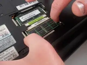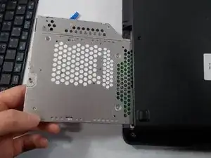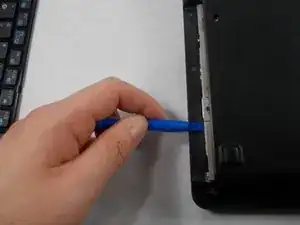 Используйте инструмент iFixit для вскрытия, чтобы извлечь оптический привод слева от ноутбука.