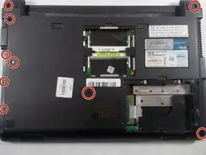 Переверните ноутбук и удалите девять винтов 5 мм крестовой отвёрткой Phillips #0.