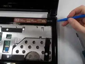 Тем же инструментом снимите пластиковую верхнюю панель ноутбука.