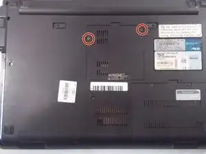 Переверните компьютер и отвинтите два винта 5 мм крестовой отвёрткой Phillips #0.