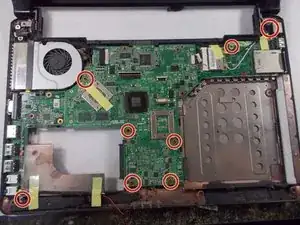 Выньте материнскую плату из ноутбука и удалите её из устройства.
