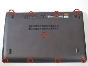 Снимите восемь винтов Philips #00 длиной 4,7 мм, крепящих аккумулятор.