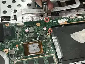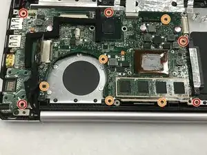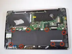 Снимите пять винтов 5,9 мм, удерживающих материнскую плату, отверткой Phillips #0.