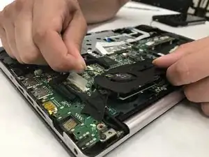 Поднимите и извлеките вентилятор охлаждения из посадочного места.