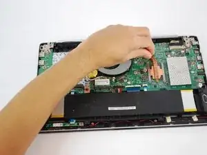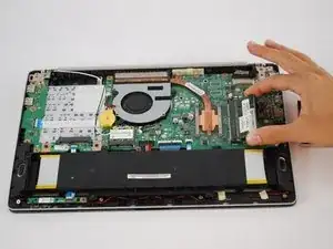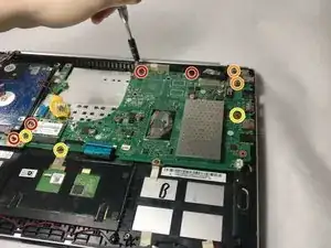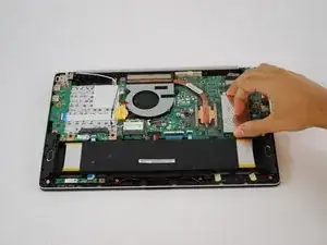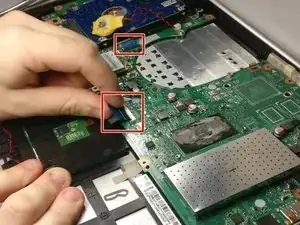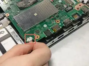 Отключите материнскую плату от показанного разъёма — материнская плата теперь извлечена из вашего устройства.