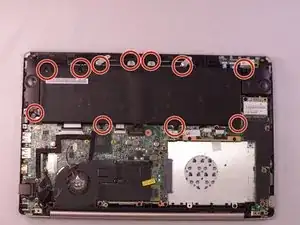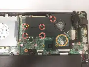 Используя отвертку Phillips #0, выкрутите винты 3,5 мм, окружающие материнскую плату.