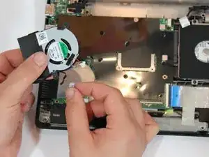 Отключите разъём набора проводов, расположенный в нижнем углу у вентилятора.