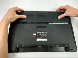 Двумя руками сдвиньте заднюю крышку от ноутбука по горизонтали.