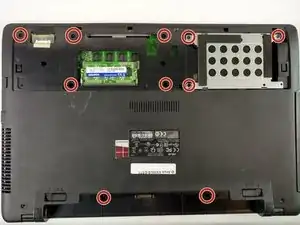 Положите ноутбук на ровную поверхность нижней стороной вверх.