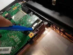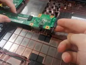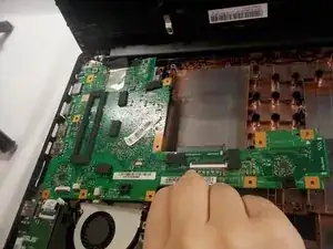 Не тяните слишком сильно, материнская плата должна легко выйти, как только она будет отделена от основания ноутбука.