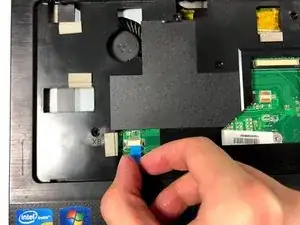 После того, как клавиатура освобождена, отключите шлейф от разъема с нулевым усилием вставки (ZIF), подняв фиксирующую защелку и извлеките шлейф.