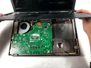 Используйте пластиковую открывалку, чтобы снять пластиковую крышку, вставив её между деталями и проводя по периметру всего ноутбука.