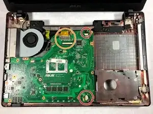 Выкрутите два винта длиной 5 мм, удерживающих материнскую плату и вентилятор.