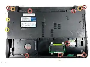 Выкрутите восемь винтов длиной 9 мм с задней стороны ноутбука.
