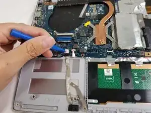 Отключите кабель дисплея от материнской платы с помощью пластикового монтажного инструмента.