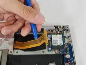 Проверьте под аккумулятором проводную сборку, соединяющую тачпад с материнской платой. Это соединение может прилипать к нижней стороне аккумулятора. Будьте осторожны, чтобы не повредить его при снятии аккумулятора.