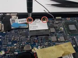 Используйте крестовую отвертку Phillips #00, чтобы выкрутить два винта длиной 6 мм, фиксирующие модуль Wi‑Fi.