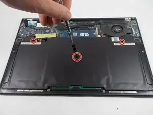 Используйте крестовую отвертку Phillips #00, чтобы выкрутить три винта длиной 7 мм, крепящие аккумулятор.
