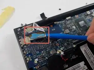 Чтобы отключить разъём дисплея, используйте инструмент для вскрытия iFixit и подденьте разъём вверх и от платы.