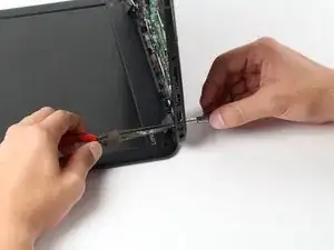 Затолкните пластиковую монтажную лопатку между клавиатурой и нижней частью хромбука.