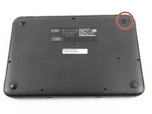 Затолкните пластиковую монтажную лопатку между резиновой ножкой и нижней частью хромбука. Поднимите лопатку, чтобы снять ножку. Это обнажит заднюю часть винта, удерживающего материнскую плату.