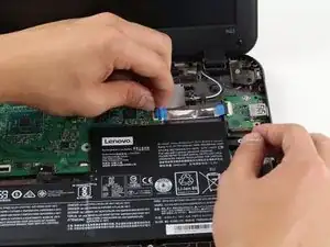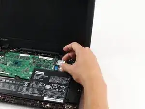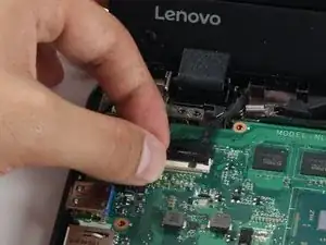 Отключите кабель дисплея от материнской платы, подняв фиксирующую крышку черного ZIF-разъема.