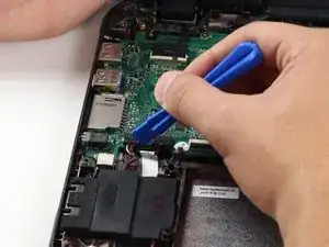 Отключите динамик и кабели батареи от их гнезд на материнской плате, используя край пластиковой монтажной лопатки, чтобы отжать разъемы кабелей от гнезд.