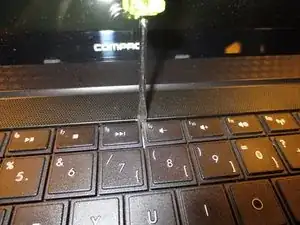 Используя лопатку, крепко надавите на клавиатуру от функциональных клавиш вниз к нижней части клавиатуры, чтобы извлечь плату.
