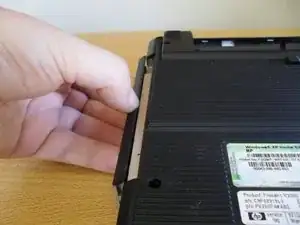 Снимите крышку, затем потяните за ярлык вверх, чтобы извлечь жёсткий диск