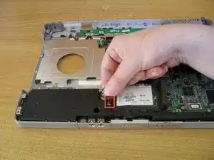 Используя маленькую плоскую отвертку, отожмите коннекторы антенн беспроводной связи от беспроводной карты