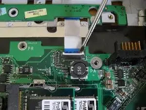 Используйте плоскую отвертку, чтобы ослабить разъём кабеля тачпада