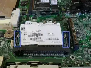 Отожмите два крепления беспроводной карты, чтобы извлечь беспроводную карту
