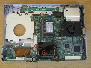 Снимите четыре винта, удерживающие материнскую плату (серебристые винты, 4 мм)